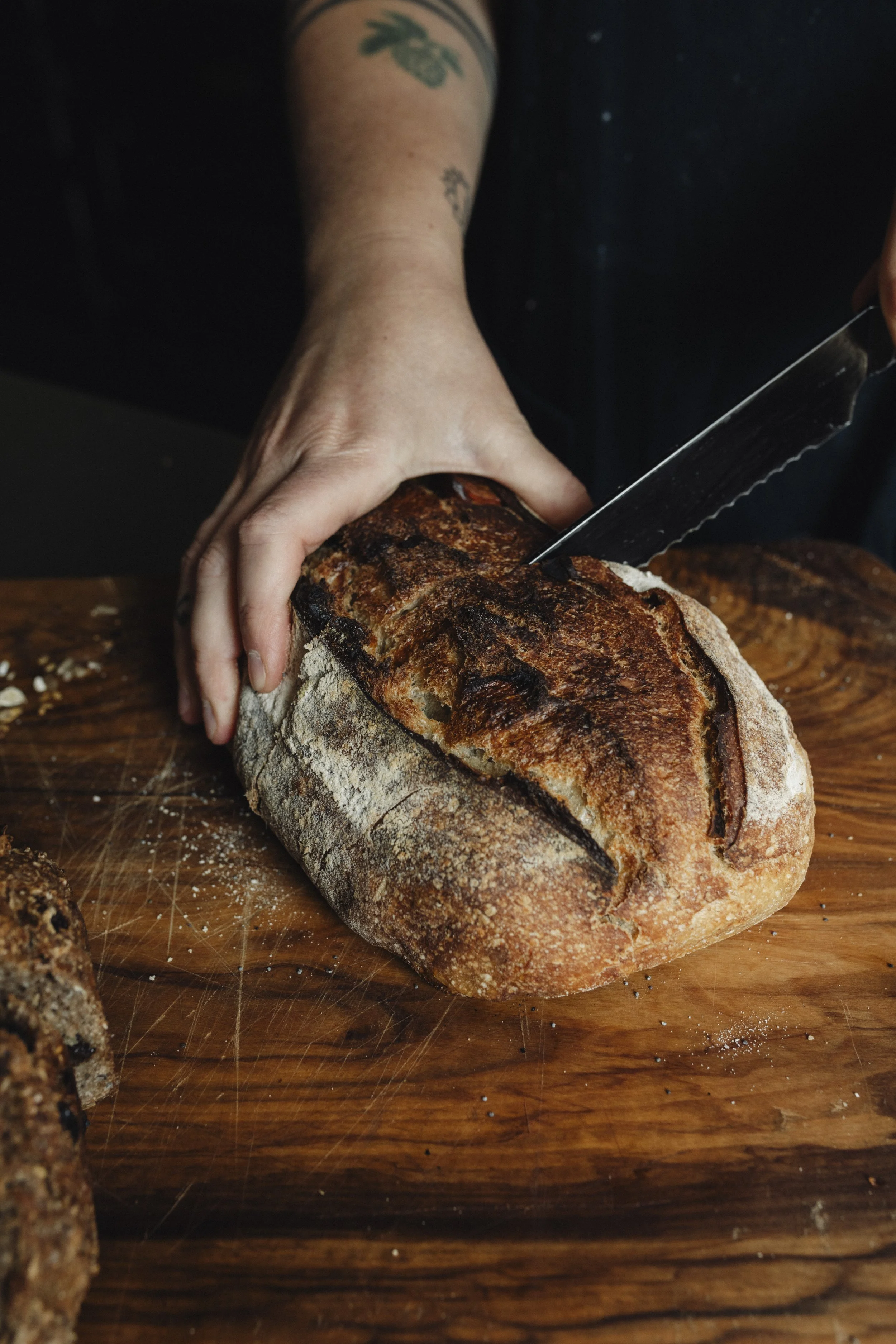 Al mijn broden worden gemaakt met pure en eenvoudige ingrediënten: biologisch meel, water, zout en natuurlijk mijn eigen zuurdesemstarter. Geen toevoegingen, geen e-nummers. Alleen de dingen die echt horen in goed en eerlijk brood. Zo kan je met een gerust hart genieten met je gezin aan tafel.